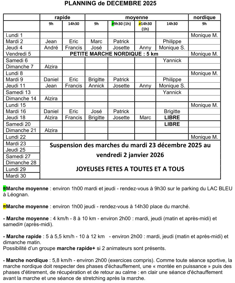 Planning de décembre 2025